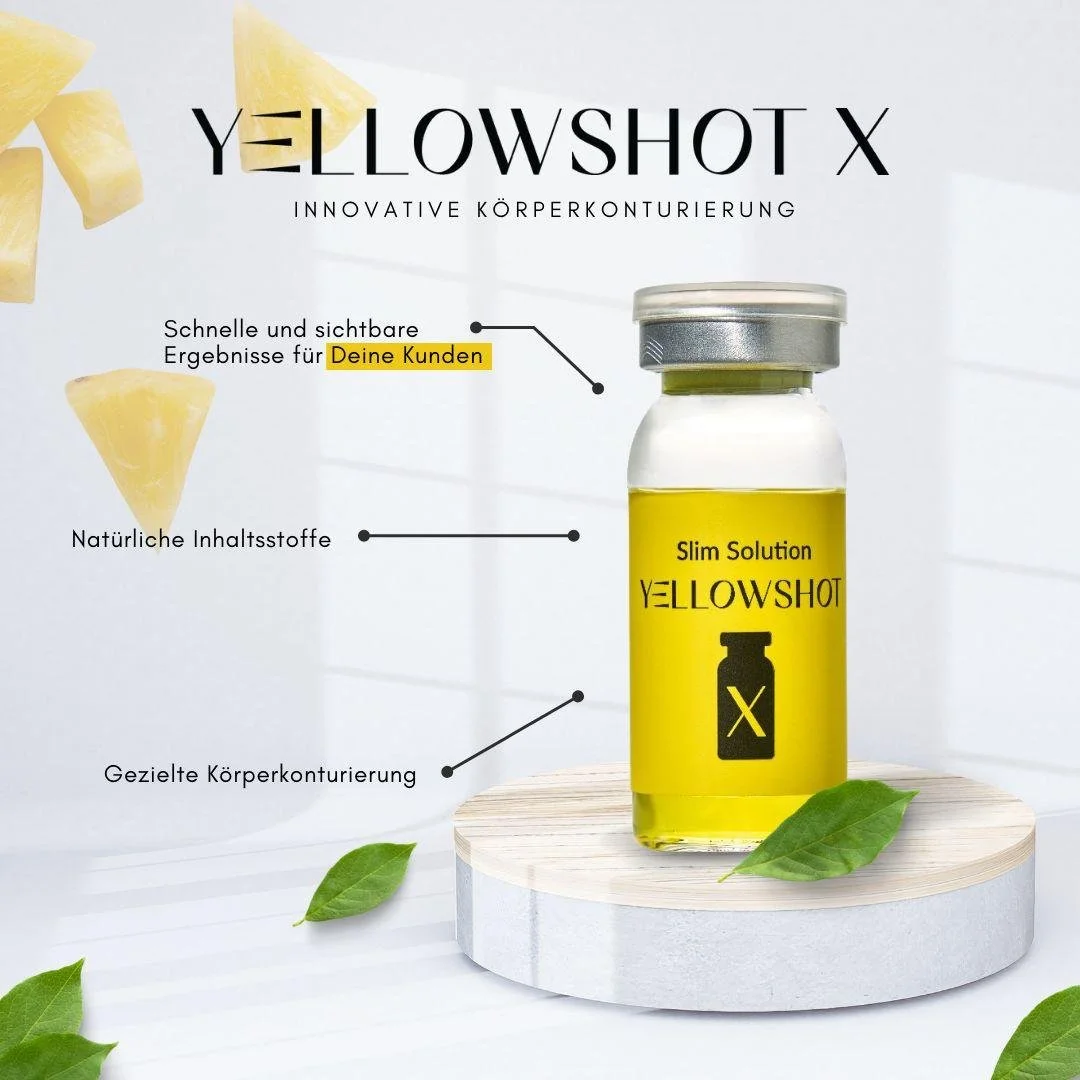 YELLOWSHOT ist eine innovative Körperpflegelösung, die eine Auswahl natürlicher. Inhaltsstoffe wie Lecithin (aus Sonnenblumenkernen), Bromelain (aus Ananas), Papain (aus Papayas), Riboflavin (Vitamin B2), Cyanocobalamin (Vitamin B12) und L-Carnitin beinhaltet. Diese Inhaltsstoffe werden traditionell für ihre unterstützenden Eigenschaften geschätzt.